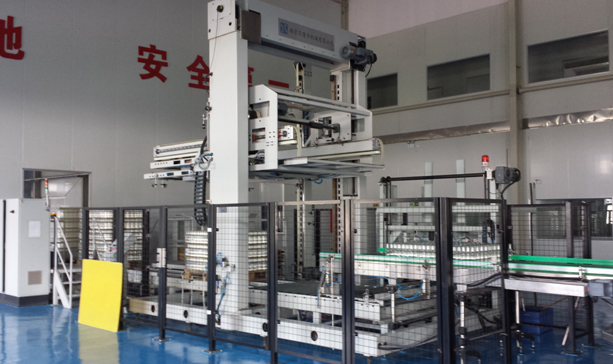 該設(shè)備用于將成垛的空玻璃瓶,拆垛后,輸送至自動流水灌裝線輸送帶上。此機型適用于